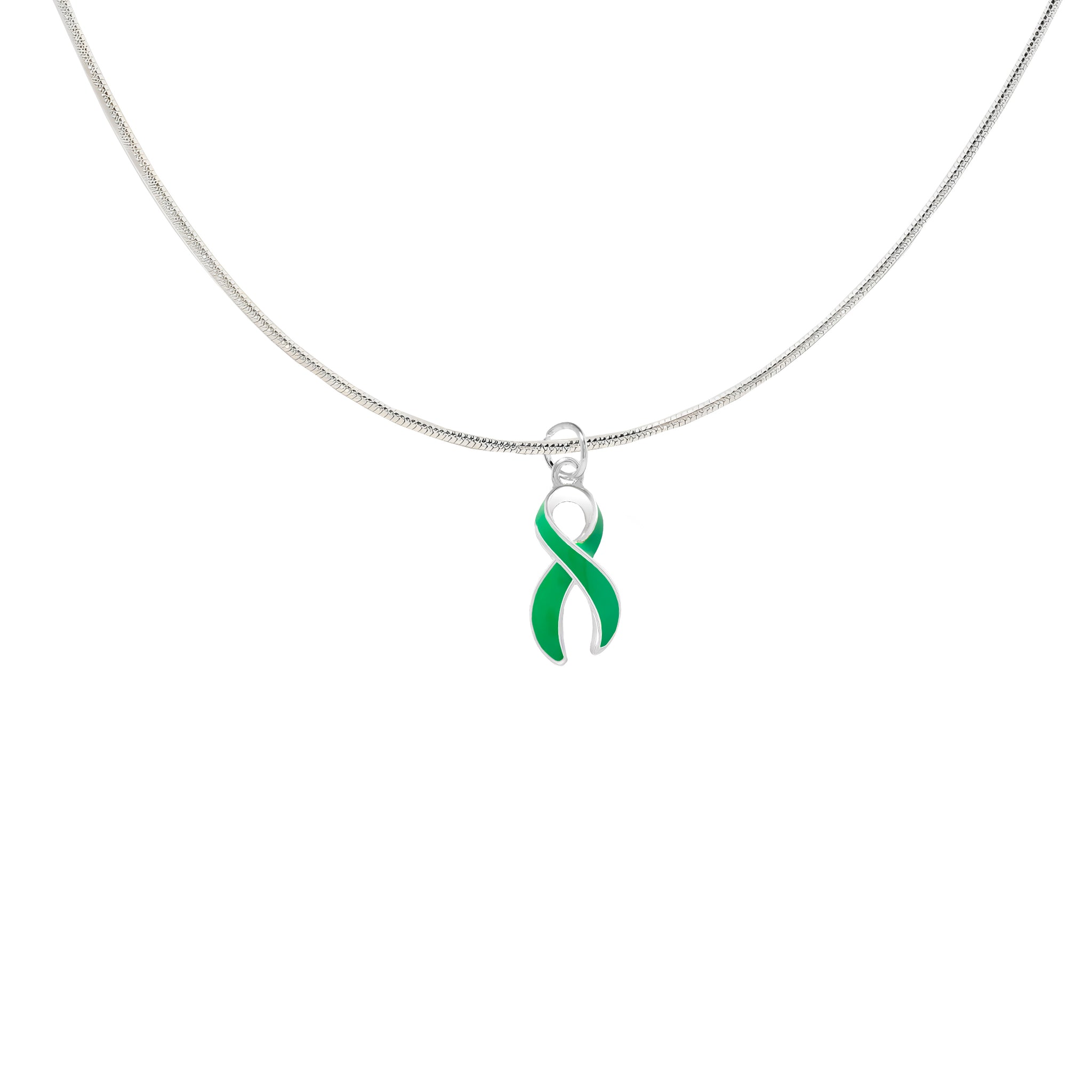 Discover the beauty and significance of our Green Ribbon Necklaces, designed to elevate your style while supporting causes close to your heart. Each necklace features a delicate green ribbon charm that symbolizes hope and awareness for mental health, cerebral palsy, bipolar disorder, liver cancer, and organ donation. Crafted on a sterling silver plated snake chain, this piece not only looks elegant but also serves as a meaningful accessory for you or a loved one. Imagine wearing it to a community event, a casual outing, or simply as a daily reminder of your commitment to these crucial causes.