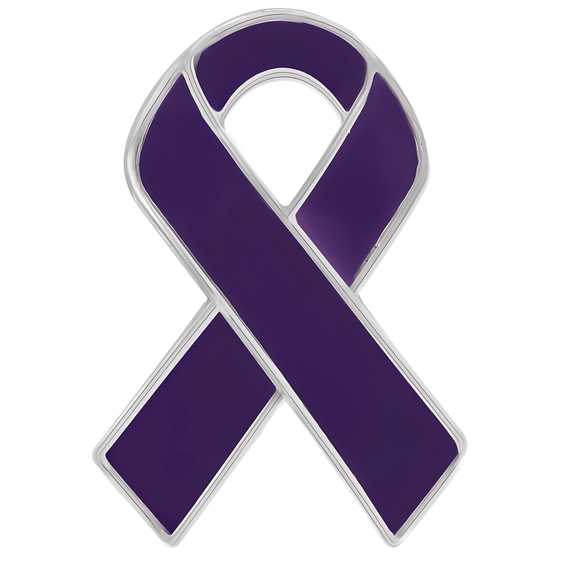 Show your support and spread awareness with elegance by wearing our Purple Ribbon Awareness Pins. Beautifully crafted, each pin features a thin silver trim that accentuates the vibrant purple ribbon, making it a standout accessory for any occasion. Whether you're attending a fundraiser, participating in a walk, or simply going about your daily activities, these sterling silver plated pins, measuring approximately 1 inch by 3/4 inch, will add a touch of sophistication and meaningful impact to your outfit. The secure tac backing ensures that your pin stays in place, allowing you to proudly raise awareness for causes close to your heart, including Alzheimer's, Domestic Violence, Pancreatic Cancer, Cystic Fibrosis, Fibromyalgia, Lupus, and Crohn's Disease. Wear your support and make a difference, one pin at a time.