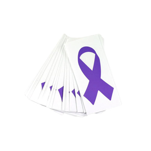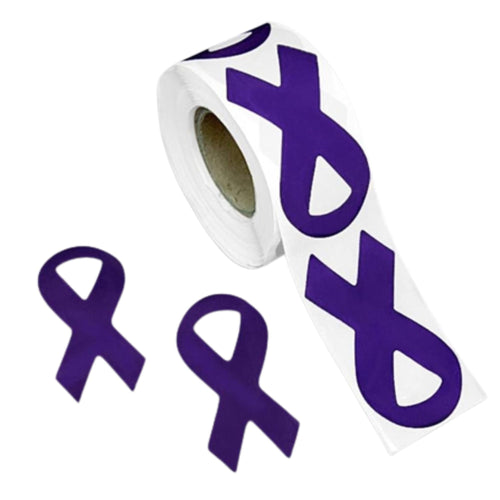 We have a large selection of purple ribbon stickers that represent causes such as ADD Awareness, Alzheimer's Disease, Colitis Awareness, Crohn's Disease, Cystic Fibrosis, Epilepsy, Fibromyalgia, Gynecological Cancer, Lupus, Pancreatic Cancer, and Testicular Cancer. All our products are in stock and ship the same day.