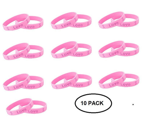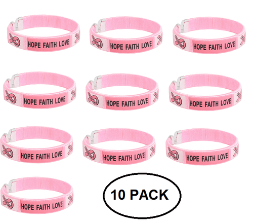 10 Pack Pink Ribbon Armbands