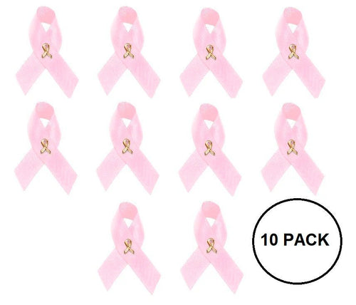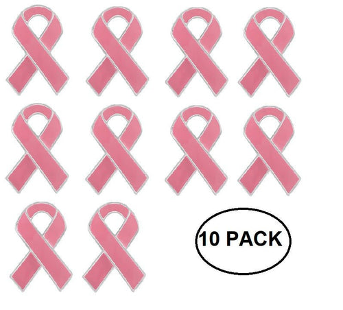 10 Pack Pink Ribbon Pins