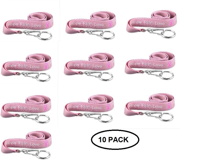 Elevate your daily routine while making a meaningful statement with our 25 Pack Breast Cancer Pink Ribbon Hope Faith Love Lanyards. More than just a practical accessory, these lanyards embody strength, resilience, and solidarity in the fight against breast cancer. Imagine carrying your keys or badge with a constant reminder of hope draped around your neck—a daily nod to the courage of survivors and the unity of those who support them. Each lanyard features a vibrant pink hue, intricately woven with the empowering words "Hope Faith Love," serving as a beacon of hope and a testament to your dedication to the cause. Measuring 17 inches in length and 3/4 inch in width, they offer durability and comfort for everyday use, making them the perfect companion for healthcare professionals, organization members, or anyone wishing to express their support. Join a community that stands united and make a difference, one lanyard at a time.