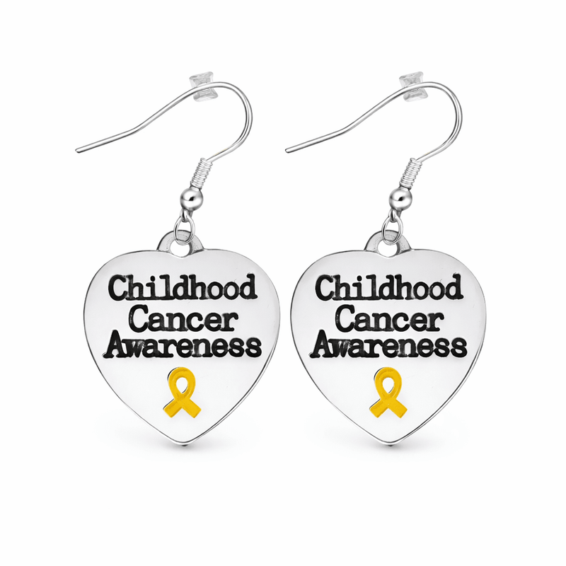 When you wear the Childhood Cancer Awareness Heart Earrings, you're not just wearing jewelry; you're making a heartfelt statement. These exquisite earrings feature silver heart charms adorned with a delicate gold ribbon and the words "Childhood Cancer Awareness," serving as both a beautiful accessory and a powerful symbol of hope and solidarity. Each charm, sterling silver-plated and approximately 5/8 inch in size, is crafted to perfection, capturing the essence of love and resilience. Imagine starting your day by putting on these earrings, knowing that every glance in the mirror reminds you of your commitment to an important cause. Whether you're heading to work, meeting friends, or attending an event, these earrings add a touch of elegance and purpose to any outfit. They spark conversations, raise awareness, and most importantly, honor the brave children and families affected by cancer. Beyond their aesthetic appeal, the Childhood Cancer Awareness Heart Earrings are a daily reminder of compassion and a call to action. With each wear, you contribute to a greater mission, helping to bring attention to the fight against childhood cancer. Elevate your accessory game while making a meaningful impact—because every heart matters.