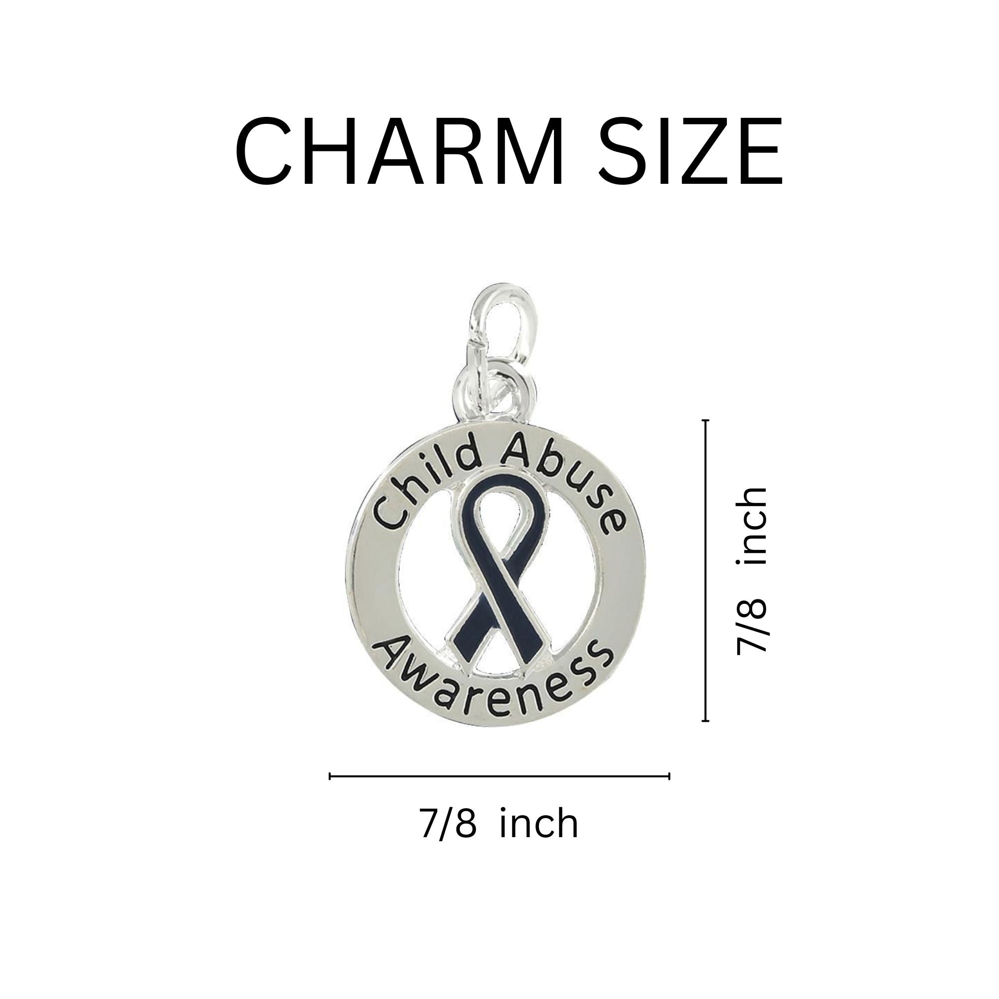 Carry a symbol of hope and support wherever you go with our Dark Blue Ribbon Round Child Abuse Awareness Keychains. Crafted with care, each keychain features a sterling silver-plated round charm inscribed with "Child Abuse Awareness" encircling a striking blue ribbon at the center. Imagine attaching this meaningful token to your keys, bag, or purse, each time remembering the critical cause it represents. The silver horseshoe-style key ring ensures durability and adds a touch of elegance to your everyday essentials. Measuring approximately 1 1/2 inches in diameter for the key ring and 7/8 inch for the charm, these keychains are a perfect balance of size and impact. By choosing these keychains, you're not just adding a stylish accessory to your collection—you're taking a stand against child abuse and spreading awareness one step at a time. Join the movement, carry the message, and make a difference.